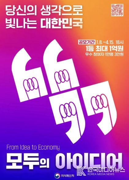 [ 한국미디어뉴스 이원영 기자 ] 지식재산처 출범 100일을 맞이하여 국민 누구나 창의적 아이디어로 국가 경제와 사회 발전에 참여할 수 있는 문이 열린다. 정부는 국민 모두가 활발하게 아이디어를 낼 수 있는 장을 마련하고, 우수 아이디어는 실제 정책과 사업으로 현실화하는 ‘패스트 트랙’ (Fast Track)을 가동한다.