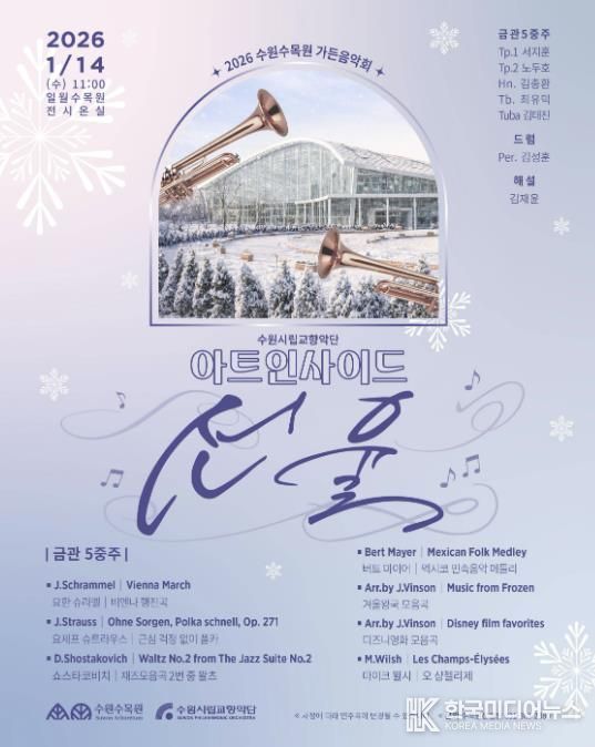 [ 한국미디어뉴스 이보영 기자 ] 수원특례시는 1월 14일 일월수목원 전시온실에서 수원시립교향악단 아트인사이드 ‘선율’을 개최한다.