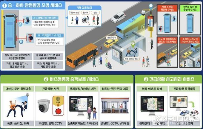 또한 차도에서 보행자가 나타나거나 불법 주정차가 발생하는 경우에도 자동 경고 및 계도 기능이 작동해 정류장 주변 교통 안전을 종합적으로 관리한다.