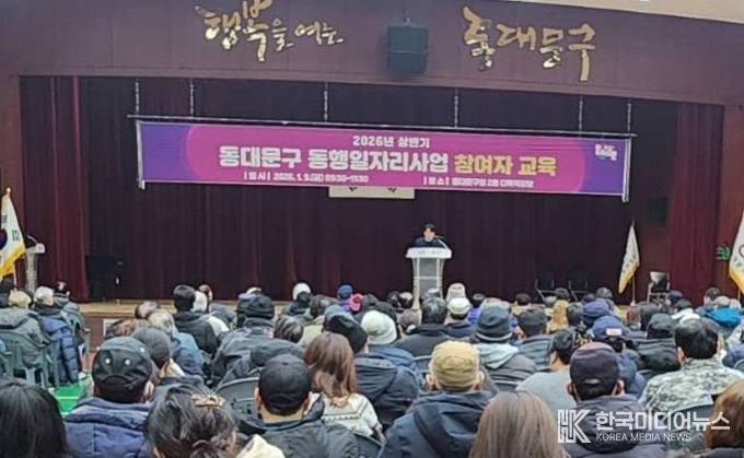 [ 한국미디어뉴스 이원영 기자 ] 서울 동대문구는 지난 9일 구청 2층 다목적강당에서 ‘2026년 상반기 동행일자리사업’ 참여자 302명을 대상으로 성희롱 예방 및 산업안전보건 집합교육을 실시하고, 같은 날부터 본격적인 근무에 들어간다고 밝혔다. 구는 “현장에 배치되기 전 기본 교육을 통해 참여자의 권익을 보호하고 안전 수칙을 숙지시키는 데 초점을 맞췄다”고 설명했다.