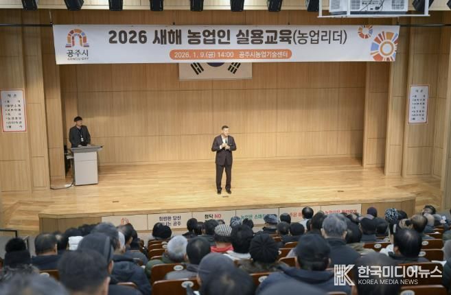 [ 한국미디어뉴스 이원영 기자 ] 공주시는 지난 9일 농업기술센터 대강당에서 이장과 농업인학습단체 임원 및 교육을 희망하는 농업인 등을 대상으로 2026년 새해 농업인 실용교육 ‘농업리더 특별과정’을 실시했다.