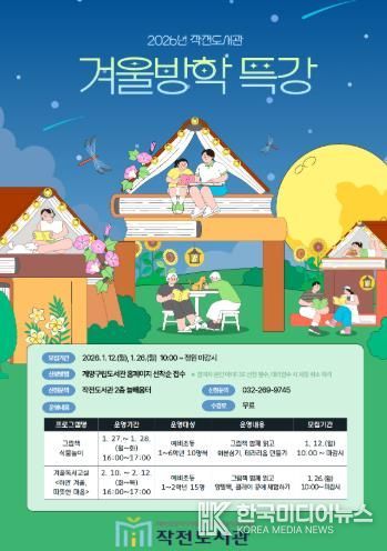 [ 한국미디어뉴스 이원희 기자 ] 재단법인 인천광역시계양구인재양성장학교육재단 작전도서관에서는 2026년 겨울방학을 맞아 어린이를 위한 다양한 방학 특강 프로그램을 운영한다.