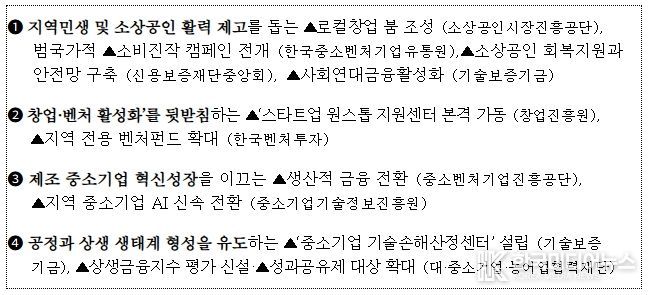 이 자리에서 중소벤처기업진흥공단, 소상공인시장진흥공단, 기술보증기금등 15개 기관으로부터 업무 보고를 받는 가운데, 중소기업중앙회, 벤처기업협회, 소상공인연합회, 코리아스타트업포럼 등 5개 민간 기업단체가 참여하여, 열띤 토론이 펼쳐졌다.