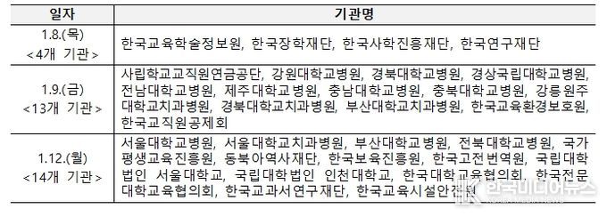 둘째 날인 1월 9일에는 서울(사학연금공단 TP타워)에서 국립대학병원 등 13개 기관이 주요 업무를 보고했다.