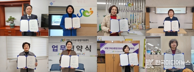 이번 협약은 비대면으로 체결했으며, 공단과 인천 계양구 육아종합지원센터(센터장 오선영), 남동구(센터장 나영란), 동구(센터장 김은선), 미추홀구(센터장 이미선), 서구(센터장 장미숙), 부평구(센터장 장성란), 연수구(센터장 최종미) 총 8개 기관이 참여했다.