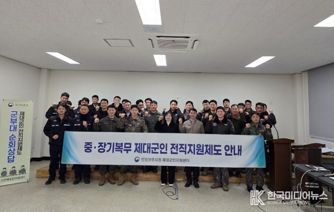 [ 한국미디어뉴스 이원영 기자 ] 국가보훈부 인천보훈지청 제대군인지원센터(센터장 서경민)는 1월 13일 육군 수도군단 제1019부대 5년 이상 복무한 중장기복무 전역예정군인을 대상으로 ‘제대군인 전직지원 사업 홍보를 위한 찾아가는 군부대 순회교육’을 실시 했다. ‘찾아가는 군부대 순회교육’은 제대군인지원센터가 각 군부대와의 협조를 통해 교육 접근성과 참여율을 높이기 위해 군부대 내에서 직접 제대예정군인 전직지원제도와 국가보훈제도를 소개하는 프로그램이다.
