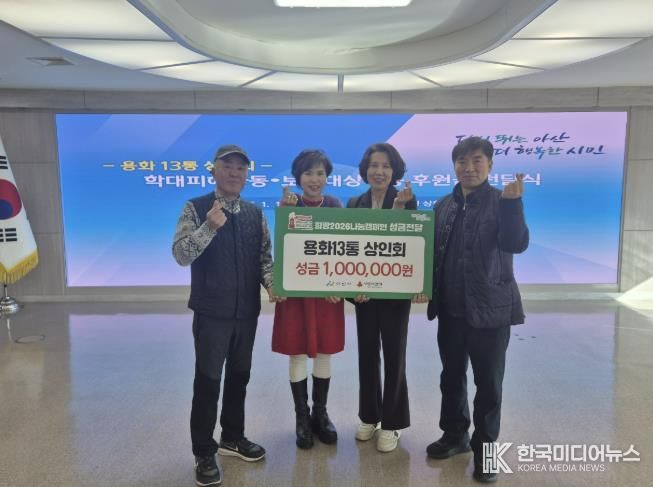 [ 한국미디어뉴스 이원영 기자 ] 아산시는 용화13통 상인회가 지역 내 학대 피해 및 보호대상을 위해 후원금을 기탁했다고 밝혔다.