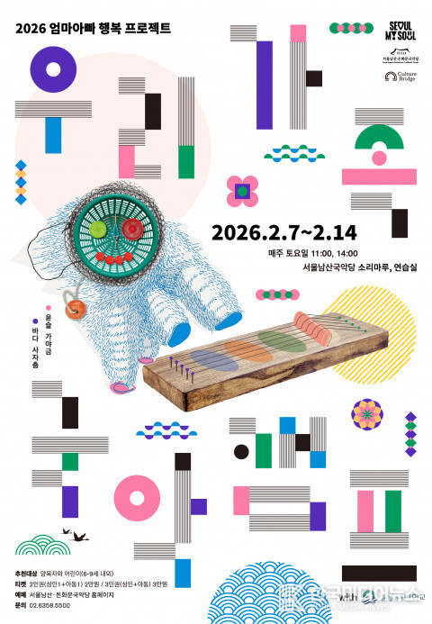 엄마아빠 행복 프로젝트 ‘우리가족 국악캠프’의 주요 대상은 양육자와 어린이로, 어린이 권장 연령은 6~9세다. 티켓은 2인권 2만원, 3인권 3만원이며, 보다 자세한 내용과 예매는 서울남산·돈화문국악당 누리집을 통해 확인할 수 있다.
