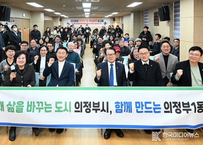 [ 한국미디어뉴스 김서안 기자 ] 의정부시 의정부1동주민센터는 1월 14일 주민센터에서 시장, 도‧시의원, 지역 단체장, 주민 등이 참석한 가운데 ‘2026년 의정부1동 주요업무보고회’를 열고 동 현안과 올해 핵심사업 추진 방향을 공유했다.