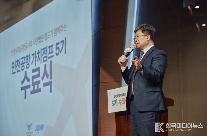 이날 수료식에는 인천국제공항공사 신가균 경영본부장을 포함해 이번 5기 가치점프 프로그램에 참여한 대학생 교육봉사자, 지역아동센터 청소년 및 교사 등 110여 명이 참석했다.