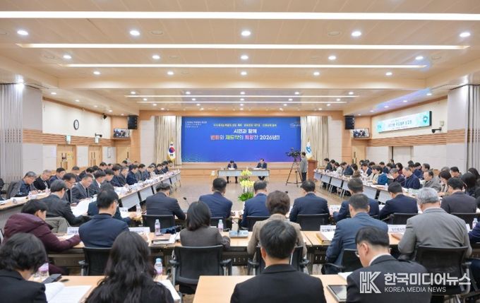 [ 한국미디어뉴스 이종철 기자 ] 여수시는 지난 15일 시청 회의실에서 정기명 여수시장 주재로 5급 이상 간부 공무원 70여 명이 참석한 가운데 ‘2026년 주요 업무 보고회’를 개최했다.