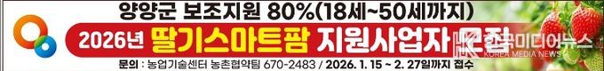 한편, 양양군은 지난 해 총 9억 6천만 원의 사업비를 투입해 딸기 스마트팜 조성 3개소와 시설 개선 1개소를 지원했으며, 딸기 판매 및 체험장 조성, 포장재·딸기묘·육묘자재 지원 등 다양한 딸기산업 육성 정책을 지속 추진 중이다.