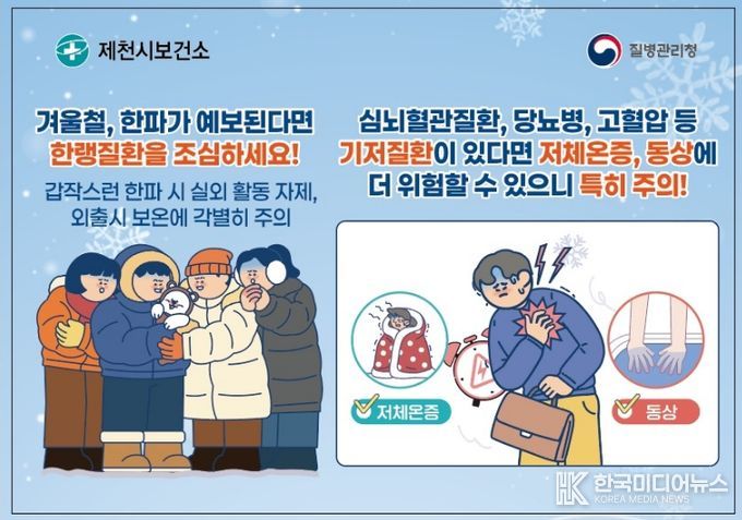 [ 한국미디어뉴스 김풍옥 기자 ] 제천시보건소(소장 안순덕)가 겨울철 한파로 인한 건강 피해를 예방하기 위해 독거 어르신, 만성질환자, 거동 불편자 등 건강 취약계층을 대상으로 집중 건강관리를 추진한다.
