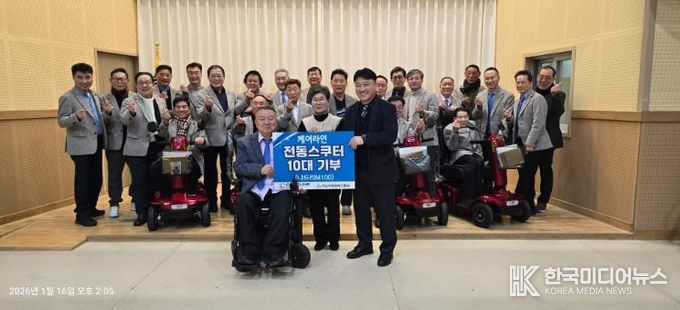 이번 전달식은 주식회사 케어라인이 장애인의 이동권 보장과 일상 자립 지원을 위한 사회공헌 활동의 일환으로 2026년 신모델 ‘나드리 M-100’ 전동스쿠터 10대를 전남지체장애인협회에 후원하며 마련됐다.