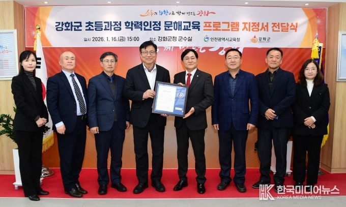 강화군은 16일 인천광역시교육청과 문해교육 프로그램 운영기관 지정서 전달식을 개최하고, ‘강화 행복학교’ 운영의 본격적인 시작을 알렸다.