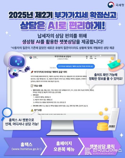 [ 한국미디어뉴스 황영수 기자 ] ■ 2025년 제2기 부가가치세 확정신고 상담은 AI로 편리하게!