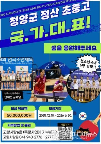 한편, 군은 지난해 12월 10일부터 ‘정산 초·중·고 탁구부 꿈 키우기 프로젝트 시즌3’ 모금을 시작해 사업의 동력을 이어가고 있다.