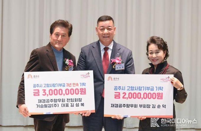 20일 공주시에 따르면, 김순덕 재경공주향우회 상임부회장과 김성복 전임 회장은 각각 200만 원과 300만 원을 기부하며 고향 발전에 대한 뜻을 보탰다.