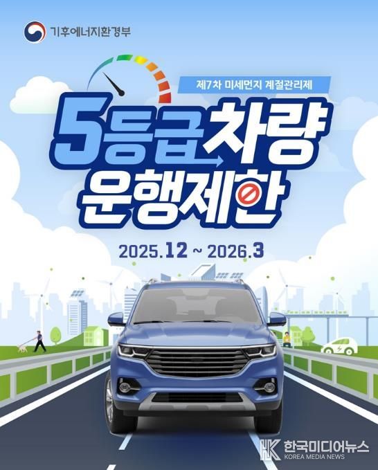 [ 한국미디어뉴스 이원희 기자 ] 파주시는 제7차 계절관리제 기간인 2025년 12월부터 2026년 3월까지 배출가스 5등급 차량에 대한 단속을 실시하고 있다.