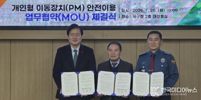 [ 한국미디어뉴스 이원영 기자 ] 인천서부교육지원청은 20일 서구청 대상황실에서 서구청, 서부경찰서와 ‘개인형 이동장치(PM) 안전 이용’ 업무협약을 체결했다.
