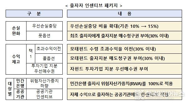 지역사회가 참여하는 모펀드별 ‘운영위원회’를 설치하고 지역투자 재원 확보를 위해 출자자 인센티브 패키지를 제공한다. 인센티브는 손실은 낮게, 수익은 높게, 대상은 넓게 설정한다. 지역 기반 벤처캐피탈 육성을 위한 지역운용사 인센티브도 운영할 계획이다.