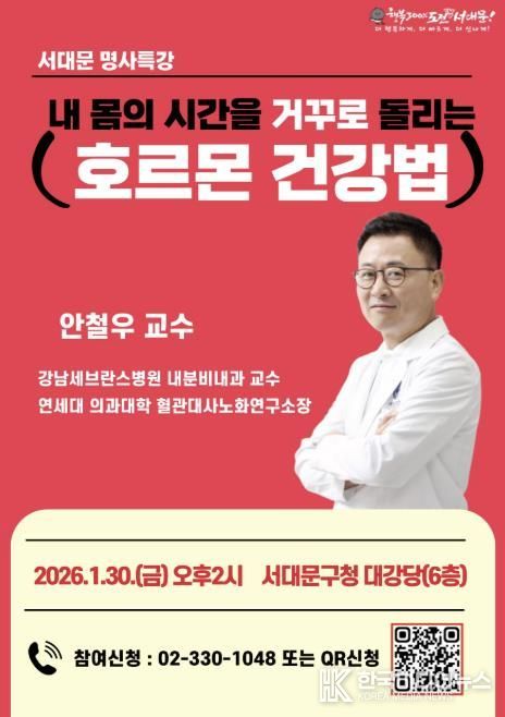 이성헌 서대문구청장은 “호르몬 건강관리법이 보다 활력 있는 일상과 노후를 가능하게 할 것”이라며 “앞으로도 건강, 환경, 경제, 문화 등 다양한 주제의 명사 특강을 주민분들께 꾸준히 제공하겠다”고 말했다.