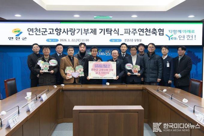 [ 한국미디어뉴스 김서안 기자 ] 파주연천축협 임직원들이 뜻을 모아 지난해 연천군에 고향사랑기부금 총 3,100만 원을 기부했다.
