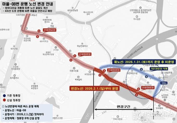 기존 노선은 2026년 1월 31일까지 운영되며, 2월 1일 첫차부터는 변경된 노선으로 본격적인 운행을 시작한다.