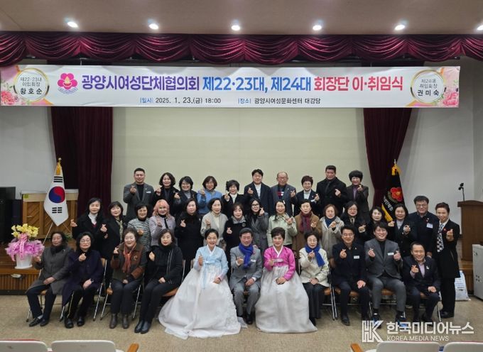 [ 한국미디어뉴스 이종철 기자 ] 광양시 여성단체협의회는 지난 1월 23일, 여성문화센터 1층 대강당에서 제 22․23대 회장 이임과 제24대 회장 취임을 기념하는 이·취임식을 성황리에 개최했다.