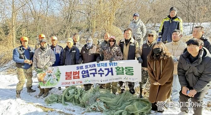 이번 활동은 아산시를 비롯해 금강유역환경청, 야생생물관리협회 밀렵·밀거래 감시단, 야생생물관리협회 아산지회가 함께 참여해 진행됐다. 야생생물 불법 포획과 서식지 훼손을 사전에 차단하기 위한 현장 대응 차원에서 마련됐다.
