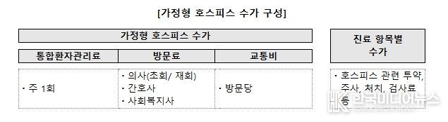 구체적으로, 의사·간호사·사회복지사의 환자 가정 방문 및 임종 돌봄, 전화상담 등 상시적 환자 관리서비스에 대한 수가를 인상하여 가정형 호스피스 전반에 대한 보상을 강화한다.