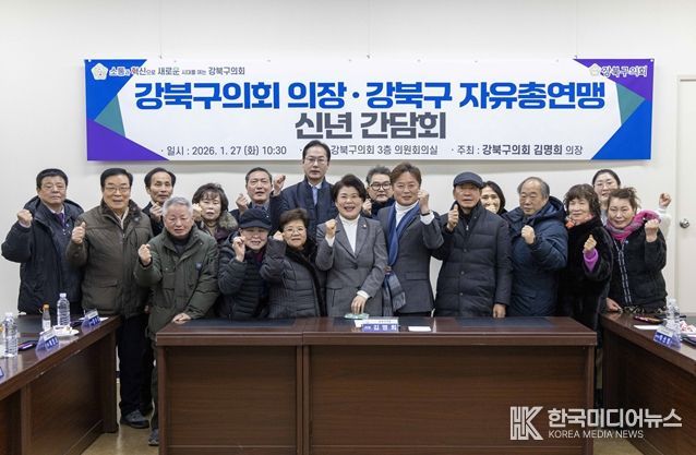 [ 한국미디어뉴스 이원영 기자 ] 강북구의회 김명희 의장(번1·2동, 수유2·3동)은 지난 1월27일, 강북구의회 3층 의원회의실에서 ‘강북구의회 의장·강북구 자유총연맹 신년간담회’를 개최하고, 새해 인사와 함께 단체 운영 현황과 지역 현안에 대한 의견을 청취했다. 이번 간담회는 자유총연맹 임원 및 각 동 임원들이 한자리에 모여 지역사회 발전을 위한 소통과 협력을 다지기 위해 마련됐다.
