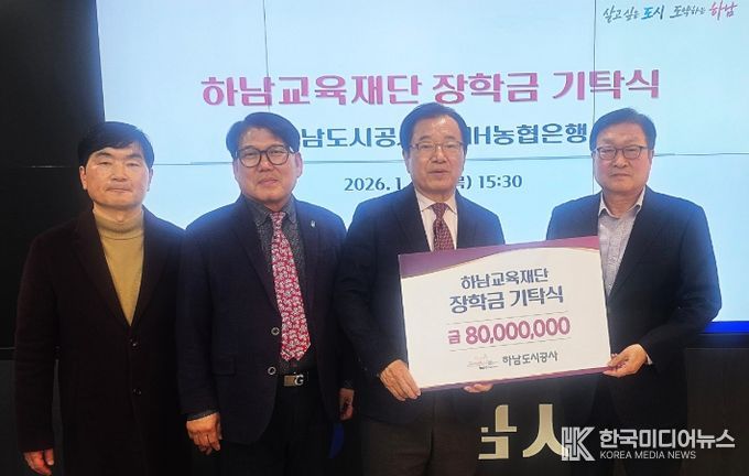 [ 한국미디어뉴스 김서안 기자 ] 하남교육재단은 29일 하남시청에서 하남도시공사로부터 하남시 미래인재육성을 위해 장학금과 캠퍼스투어 운영을 위한 기부금 8천만 원을 전달받았다.