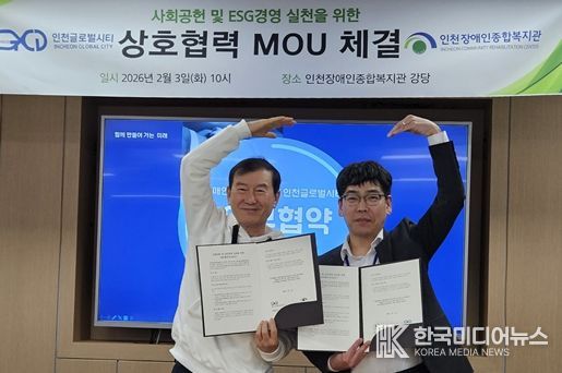김민석 인천장애인종합복지관장은 “장애인들이 지역사회 구성원으로 삶을 영위하는 데 ㈜인천글로벌시티가 중요한 역할을 할 수 있을 것으로 기대한다”며 “지역사회 장애인 삶의 질을 높이고 지속 가능한 복지를 실현하는 데 뜻깊은 협력을 이어가길 바란다”고 말했다.