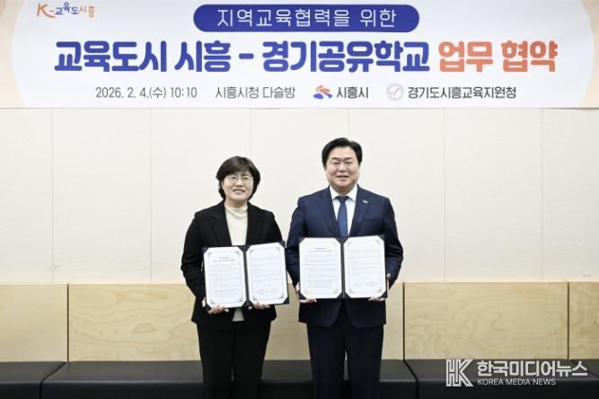 [ 한국미디어뉴스 이보영 기자 ] 시흥시는 지난 2월 4일 시청 다슬방에서 시흥교육지원청과 함께 ‘지역교육협력을 위한 교육도시 시흥-경기공유학교’ 업무협약을 맺었다.