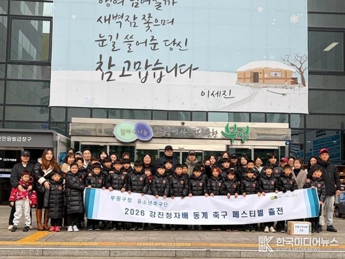[ 한국미디어뉴스 양선희 기자 ] 부평구청 유소년축구단은 전라남도 강진군에서 열리는 ‘2026 강진청자배 동계 축구 페스티벌’ 참가를 앞두고, 5일 구청에서 출정식을 가졌다.