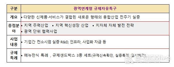 중기부는 광역연계형 규제자유특구의 실질적인 성과 창출을 위해 규제완화뿐만 아니라 실증 R&D와 관련 인프라 구축을 지원하고, 실증결과를 기반으로 한 신제품·서비스의 시장 진출을 촉진하기 위해 사업화 지원도 병행한다.