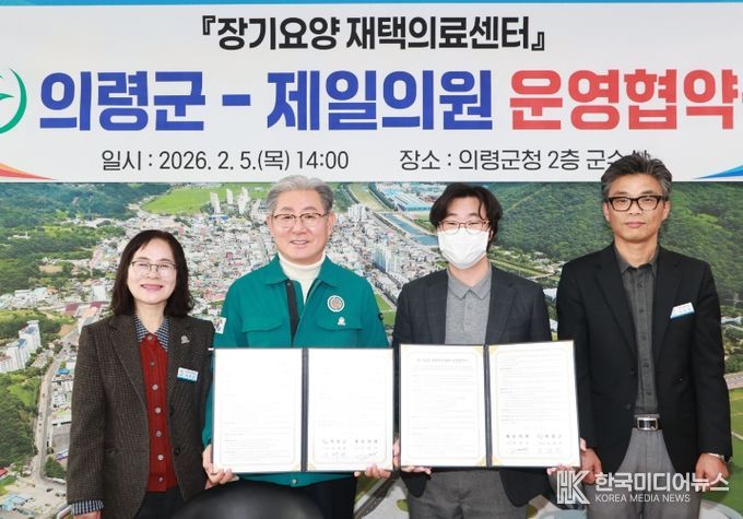 의령군은 5일 군청 2층 군수실에서 제일의원(원장 주원근)과 ‘장기요양 재택의료센터 운영협약’을 체결하고, 거동 불편 장기요양 수급자를 대상으로 의료서비스와 돌봄 연계를 원활히 제공하기 위한 민·관 협력체계를 구축했다고 밝혔다.