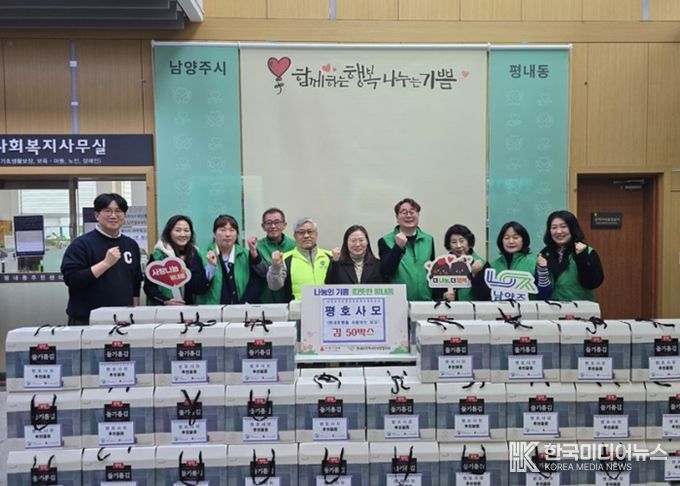[ 한국미디어뉴스 김서안 기자 ] 남양주시는 지난 5일 평내호평을 사랑하는 모임이 설 명절을 맞아 김 선물세트 50박스를 평내동 지역사회보장협의체에 기탁했다고 6일 밝혔다.