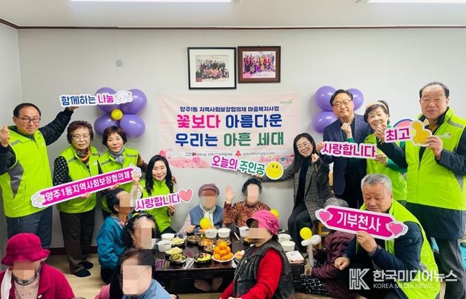 [ 한국미디어뉴스 김서안 기자 ] 양주시 양주1동은 지역사회보장협의체가 최근 정서적 고립감을 느끼는 산북4통 90세 이상 어르신들을 대상으로 경로당에서 '꽃보다 아름다운 우리는 아흔 세대' 사업을 추진했다고 밝혔다.