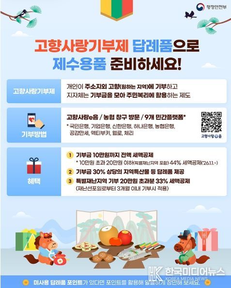 [ 한국미디어뉴스 황영수 기자 ] 고향사랑기부제 답례품으로 제수용품 준비하세요!