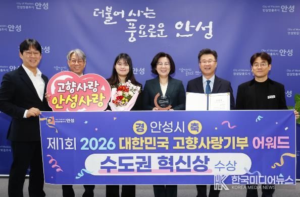 [ 한국미디어뉴스 이보영 기자 ] 안성시는 지난 2월 9일 한국프레스센터에서 열린 제1회 '2026 고향사랑기부제 어워드'에서 ‘수도권 혁신상’을 수상하며, 고향사랑기부제 운영 성과를 대외적으로 인정받았다고 밝혔다.