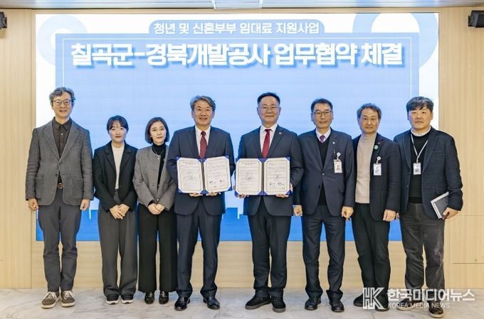 군은 지난 5일 김재욱 칠곡군수와 이재혁 경상북도개발공사 사장이 참석한 가운데, 청년 및 신혼부부의 안정적인 정주 여건 조성을 위한 업무협약을 체결했다.