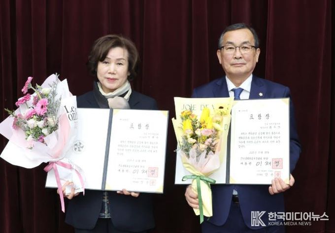 [ 한국미디어뉴스 이종철 기자 ] 전주시의회 최주만 부의장과 박혜숙 문화경제위원장이 10일 전북특별자치도청에서 열린 민주평화통일자문회의 의장표창 전수식에서 의장상을 수상했다.