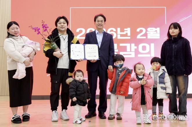 고양특례시는 지난 10일 직원 소통·공감의 날 행사에서 각각 다섯째, 여섯째 자녀를 출산·양육하고 있는 두 가정에 대해 출산장려 유공 표창을 수여했다고 밝혔다.