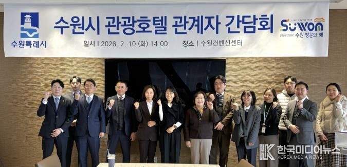 이날 간담회에는 선은임 수원시 문화관광체육국장, 황명희 관광과장 등 수원시 관계자들과 코트야드 메리어트 수원·라마다프라자호텔 수원 등 수원시 8개 관광숙박업체 관계자, 수원컨벤션센터 관계자 등이 참석했다. ‘2026~2027 수원 방문의 해’ 추진 현황, ‘수원 국제회의복합지구’ 지정 현황을 설명한 후 관광숙박업 관계자들과 관광 활성화 방안을 논의했다.
