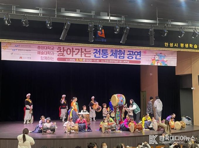 [ 한국미디어뉴스 이보영 기자 ] 안성시는 2월 10일 오전 10시 안성시평생학습관 2층 다목적실에서 열린 ‘찾아가는 전통 체험 공연 시즌 2 – 춤과 연희가 함께하는 무대’가 150여 명의 시민이 함께한 가운데 큰 호응 속에 성황리에 마무리됐다고 밝혔다.
