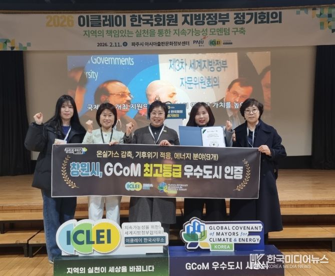 [ 한국미디어뉴스 김홍철 기자 ] 창원특례시는 글로벌 기후·에너지 시장협약(GCoM) 최고등급 도시로 선정돼, 2월 11일 세계지방정부협의회(이클레이)가 주최하는 '지방정부 정기회의‘에서 2025년도 이행평가 최고등급을 수상했다.