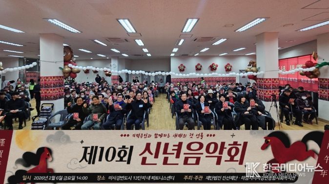 [ 한국미디어뉴스 김서안 기자 ] 2026년 붉은 말의 해 병오년을 맞이하여 하남시미사강변종합사회복지관과 재단법인 진선재단은 지난 6일 ‘제10회 지역주민 신년음악회’를 공동 주최·주관하고, 300명 이상의 지역주민이 참석한 가운데 새해의 힘찬 시작을 알렸다.