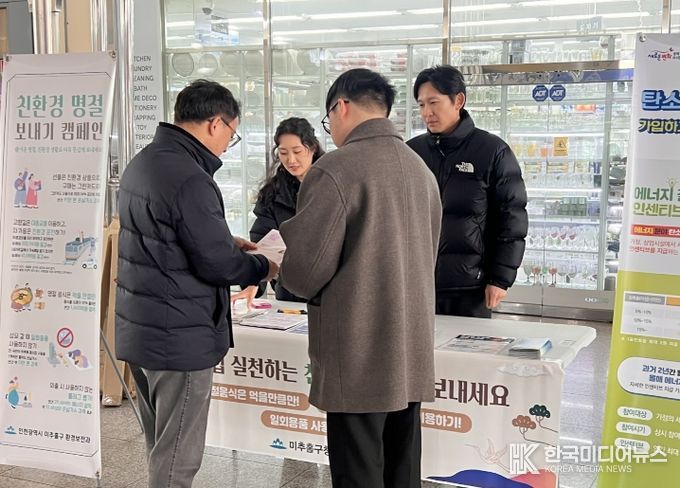 [ 한국미디어뉴스 최치남 기자 ] 인천 미추홀구는 11일 주안역 일대에서 구민들을 대상으로‘친환경 설 명절 보내기 운동(캠페인)’을 실시했다.